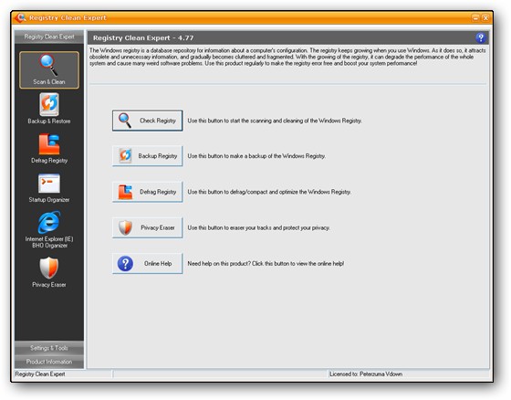 Registry Clean Expert - программа для сканирования реестра на предмет неправильной или устаревшей информации. Благодаря изменению таких данных в реестре система начинает работать быстрее и без ошибок. Программа имеет опцию резервного копирования и восстановления реестра на случай, если система даст сбой. Кроме этого, используя Registry Clean Expert, вы можете управлять приложениями, которые запускаются вместе с Windows и Internet Explorer. Также утилита включает в себя модуль поиска "шпионских" модулей.