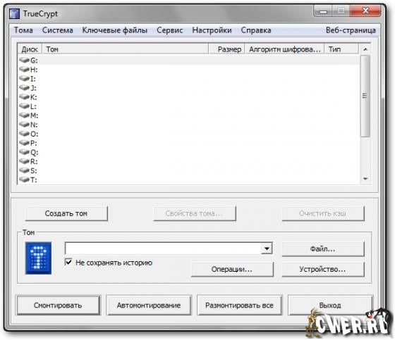 TrueCrypt - позволяет создавать виртуальные зашифрованные диски, которые затем могут использоваться как обычные логические диски системы. Допустимые алгоритмы шифрования: AES (256-bit key), Serpent (256-bit key), Twofish (256-bit key). В качестве зашифрованного хранилища ("диска") можно использовать как часть свободного места на диске, так и целиком один из имеющихся разделов жесткого диска, а также flash-карты, дискеты и другие сьемные устройства хранения данных. Еще одна из особенностей программы - отсутствие в заголовке созданного "диска" специфической сигнатуры, характерной для других подобных программ, что делает невозможным идентифицировать TrueCrypt-диск, т.к. ни одна из частей виртуального диска не отличается от случайных данных.