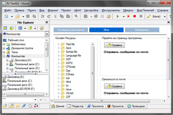 Вышла новая версия RJ TextEd - юникодового редактора со множеством возможностей для редактирования текста, html-документов, java-скриптов и т.д. Открытие множества документов в многовкладочном окне, подсветка и проверка синтаксиса, подсказки при вводе кода, закладки, неограниченное undo/redo, редактор css, html-превью, встроенный ftp-клиент, поддержка email, поддержка drag'n'drop, поддержка скинов и многое другое...