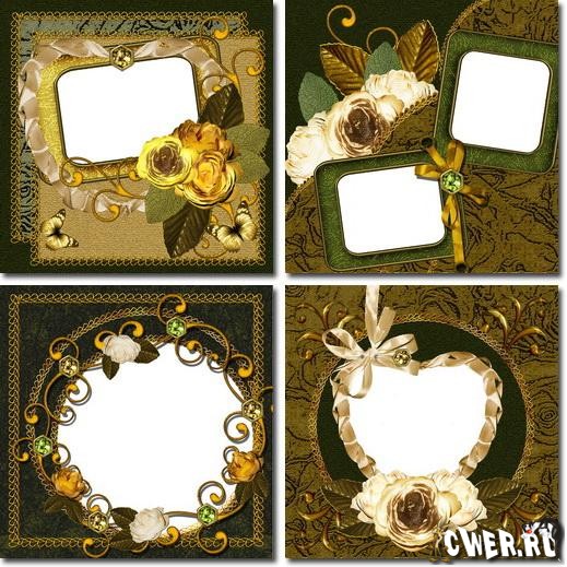 Рамки для фотографий в золотисто-зелёных тонах