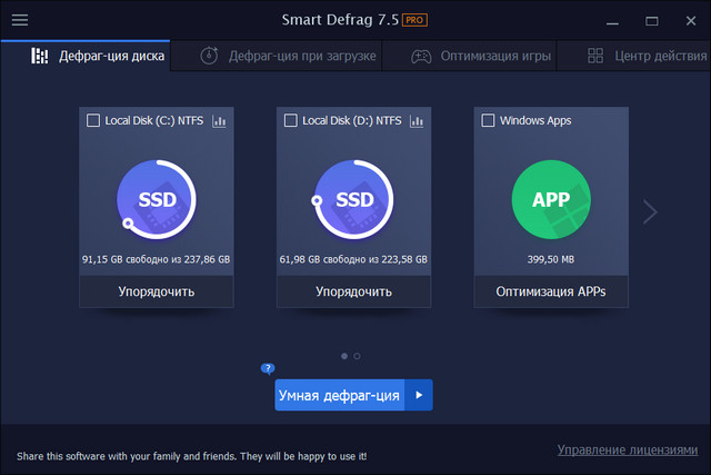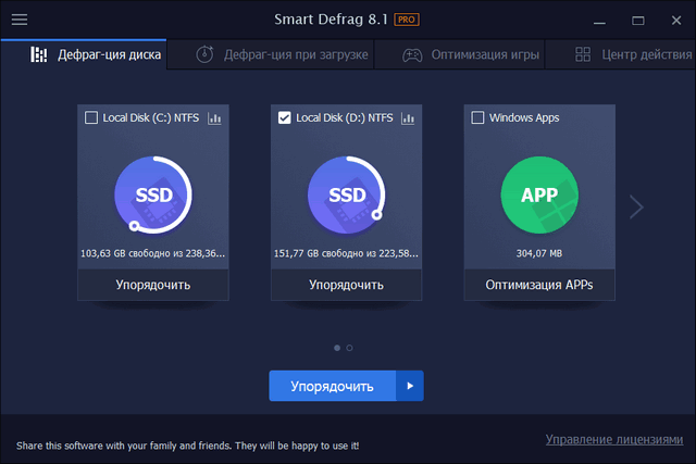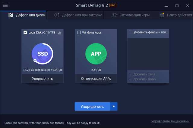 IObit Smart Defrag - программа для оптимизации системы за счет эффективной и быстрой дефрагментации диска, позволяющей ускорить загрузку файлов и увеличить производительность жестких дисков на вашем компьютере. С функцией "установить и забыть" дефрагментатор работает на вашем на компьютере автоматически в фоновом режиме, обеспечивая работу жесткого диска на максимальной скорости.