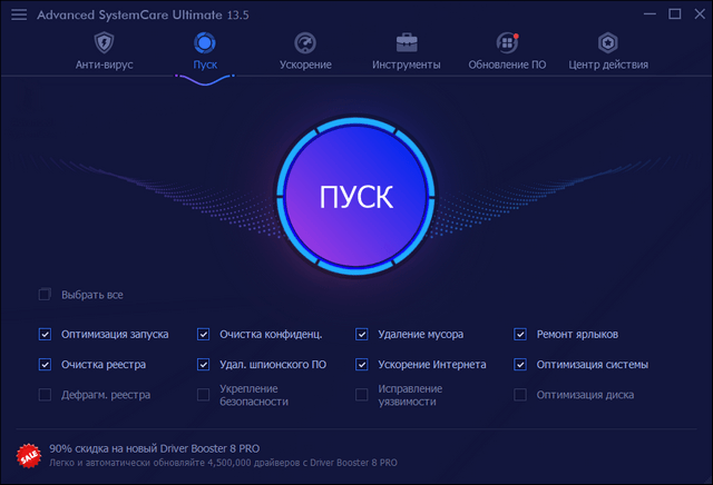 Advanced SystemCare - программный пакет, содержащий множество модулей для оптимизации, настройки и повышения производительности компьютеров, на базе ОС Windows 2000/XP/Vista/7/8/10. Приложение позволяет очистить компьютер от шпионского и рекламного ПО, найти и ликвидировать возможные угрозы и бреши в системе безопасности ОС, исправить ошибки в системном реестре, очистить временные и ненужные файлы, управлять списками автозагрузок, оптимизировать работу ПК.
