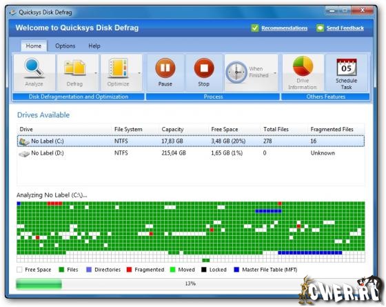 QuickSys DiskDefrag - мощный дефрагментатор жёстких дисков, использующий в своей работе собственную интеллектуальную систему покластерной дефрагментации - QSICA (Quicksys Intelligent Clusters Allocation). Поддерживаются файловые системы NTFS, FAT16, FAT32 а также, кроме жёстких дисков и любые сменные носители. Программа имеет гибкую систему настроек.