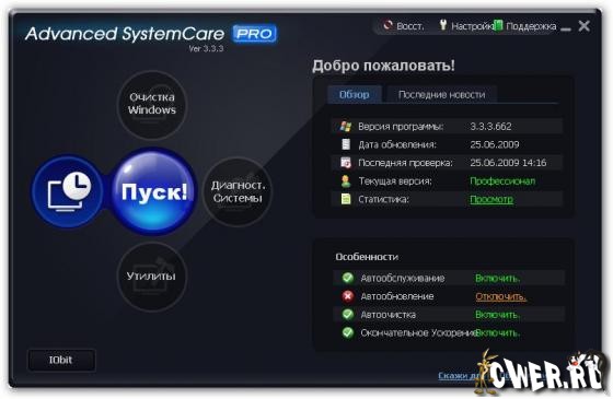 Advanced SystemCare Pro - программа, включающая в себя множество модулей для оптимизации, настройки и повышения производительности компьютеров, находящихся под управлением операционными системами Windows 2000/XP/Vista/7. Благодаря возможностям программы вы сможете очистить ПК от шпионского и рекламного ПО, обнаружить и заранее устранить возможные угрозы и бреши в системе безопасности ОС, исправить ошибки в системном реестре, очистить временные и ненужные файлы, управлять списками автозагрузок, оптимизировать работу систем.