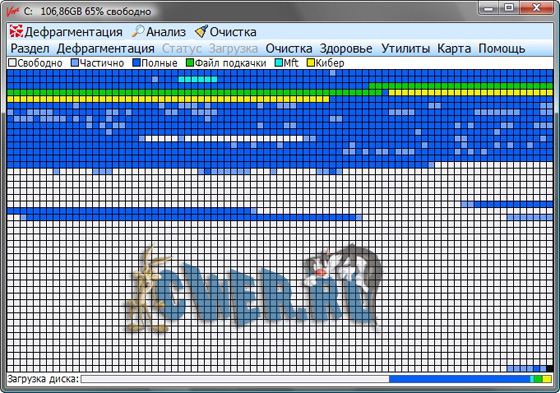 Puran Defrag - это высокоскоростной дефрагментатор, обладающий необычайно простым и удобным интерфейсом, а также некоторыми необычными функциями. Необычность включает в себя не только непривычно удобный интерфейс, но и сама технология дефрагментации, которая заключается, как в полной дефрагментации дисков, или отдельных ее файлов из простого контекстного меню, так и размещение часто употребляемых файлов в область более быстрого доступа, что как и понятно, существенно увеличивает производительность. Даже если для полной дефрагментации файла не хватает места, программа использует все имеющиеся ресурсы и дефрагментирует файл, насколько это возможно. Данный дефрагментатор идеально подойдет для тех пользователей, кому некогда, а обслуживать систему все равно надо. Имеет очень простой интерфейс, который не вызовет каких-либо проблем при использовании данной программы.