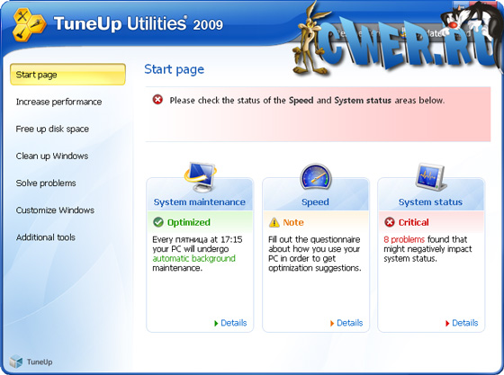 TuneUp Utilities 2009 - компактный пакет системных утилит с мощными возможностями: чистка и исправление ошибок системного реестра, восстановление и безвозвратное удаление данных, оптимизация оперативной памяти, менеджер процессов и автозагрузки, корректное удаление ставшего ненужным ПО, управление сетевыми парметрами, оптимизация интернет-соединения, настройка "скрытых" параметров системы, подробная информация о системе и многое другое.