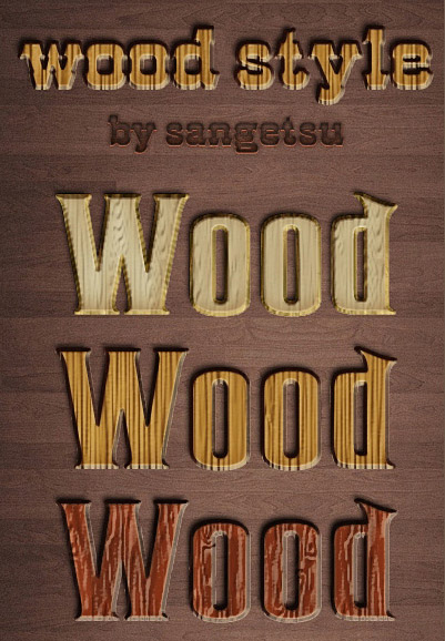 Пакет из нескольких стилей для Photoshop, придающих тексту трехмерный эффект деревянной поверхности. Архив содержит файлы в формате ASL и PSD.