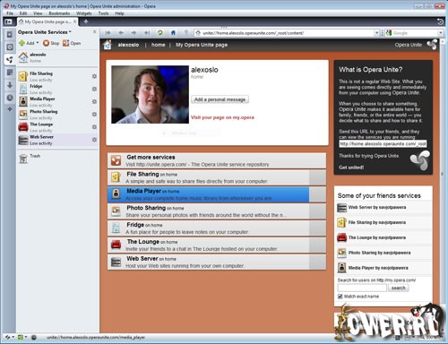 16 июня компания Opera Software официально представила Opera Unite - новую технологию, позволяющую сделать любой компьютер не только клиентским устройством, но и сервером. Это даёт возможность пользователям связываться с удаленными ПК напрямую и делиться информацией без использования онлайн-сервисов и приложений, а также удалённо работать с хранящейся на его компьютере информацией с помощью любого другого устройства, оснащённого современным веб-браузером.
