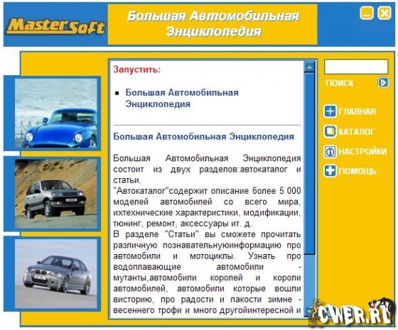 На этом диске вы найдете информацию о более чем 5 тысячах автомобилей, более чем 120-ти различных марок. Вы сможете ознакомиться с обзорами, тестами и характеристиками большого количества автомобилей.