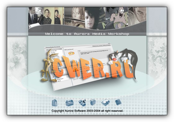 Aurora Media Workshop - набор инструментов для выполнения всех основных операций с видеофайлами - резки, склейки, конвертирования в другой формат, сохранения кадра в отдельный графический файл и т.п. Позволяет конвертировать медиафайлы (AVI, MPEG1, MPEG2, ASF, WMV, VOB, DAT , DivX, Xvid), производить риппинг аудиотреков, а также записывать с внешних источников. Кроме этого, с помощью Aurora Media Workshop можно записывать Audio CD, Data CD/DVD, Video CD и сохранять собранный образ отдельным ISO-файлом. Для поддержки WMA-формата требуется установленный Windows Media Encoder 9 или выше.