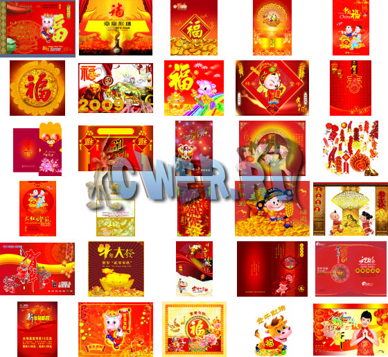 Набор рисунков в китайском стиле к Новому году быка. 32 файла большого разрешения в формате PSD. Все элементы размещены на отдельных слоях, слои отключены.