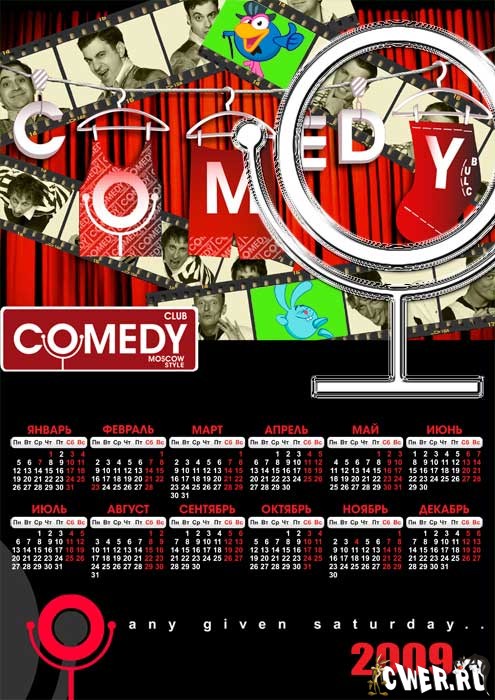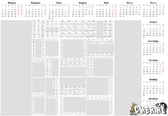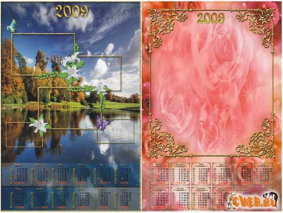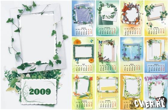 Календарь на 2009 год с местом под Ваши фотографии. Объекты расположены по слоям.