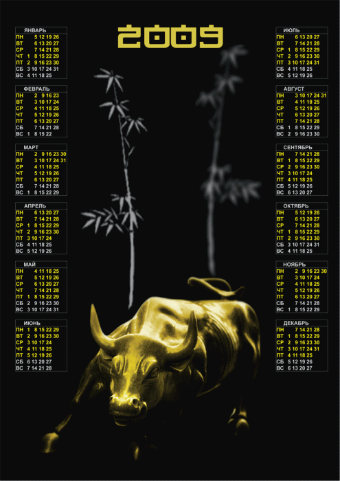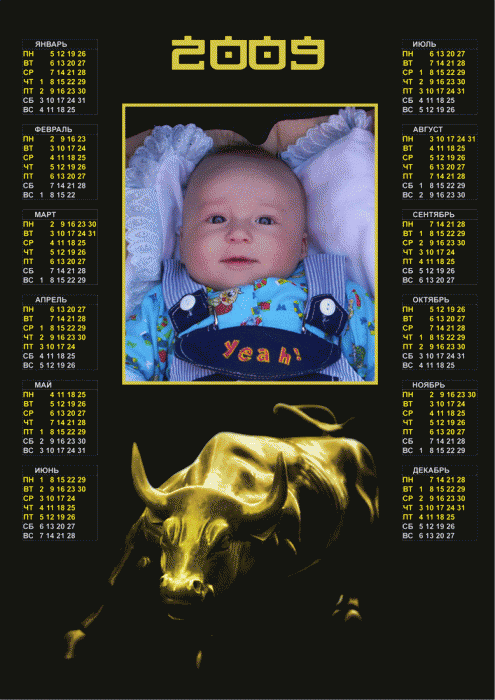 Календарь на 2009 год с местом под Вашу фотографию.
