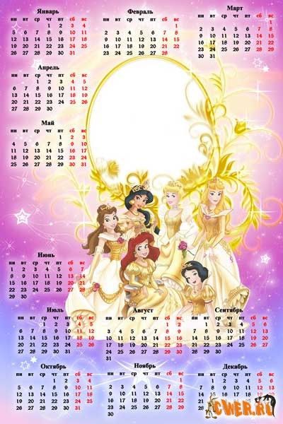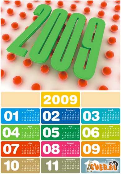 Календарь на 2009й год с возможностью вставить свои фотографии.