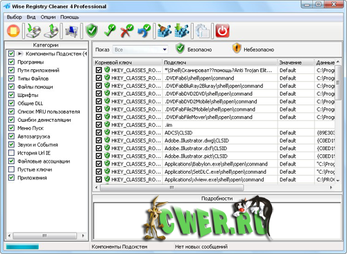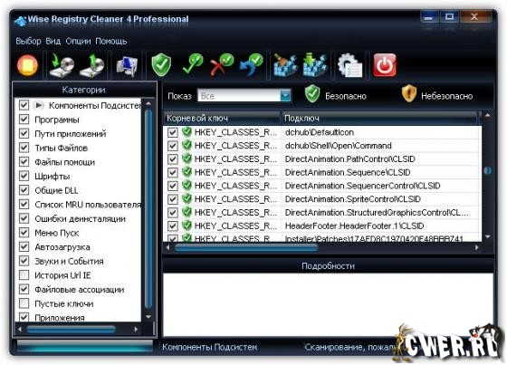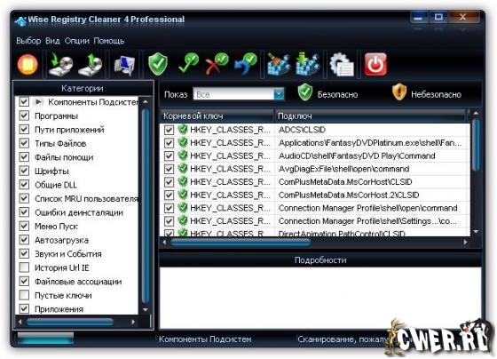 Wise Registry Cleaner - безопасная утилита для чистки реестра Windows. Wise Registry Cleaner сканирует реестр и ищет в нем некорректную и устаревшую информацию, после удаления которой операционная система работает более быстро. После того, как программа проанализирует проблемы вашей системы, вы можете сами просмотреть каждую найденную неполадку и посмотреть ее детальное описание. Имеется возможность автоматической корректировки таких проблем. Все изменения, внесенные программой в реестр, могут быть отменены за два клика мышью.