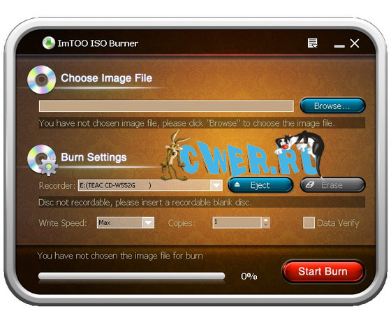 ImTOO ISO Burner - утилита с интуитивно понятным интерфейсом для записи образов в формате ISO на различные типы носителей: CD-R, CD-RW, DVD-R, DVD+R, DVD-RW, DVD+RW и DVD+R DL. Поддерживается запись дисков CD и DVD с данными (в том числе — создание загрузочных дисков), а также мультимедийных дисков. ImTOO ISO Burner позволяет установить скорость записи, по окончании процесса программа осуществит проверку записанных данных, что гарантирует работоспособность полученного диска в дальнейшем. Помимо ISO, программа поддерживает запись образов в форматах BIN/CUE, IMG, MDF, NRG, CDI, B5i, B6i и DMG. Из имеющихся функций ImTOO ISO Burner следует отметить индикаторы прошедшего и оставшегося до завершения записи времени, возможность автоматической проверки обновлений, автоматического выключения компьютера (или перехода в спящий режим) по завершению записи.
