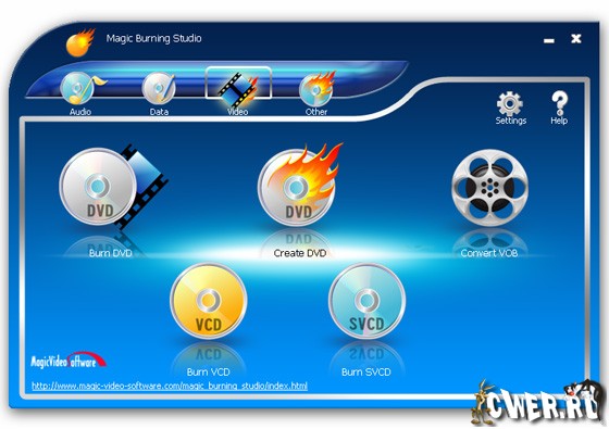 Magic Burning Studio - специальная программа для записи CD/DVD дисков, которая поддерживает очень много форматов, может не только записывать, но и стирать "болванки". На DVD можно записывать любые файлы с длиной имени до 127 знаков, а на CD - до 64. Опции скорости записи и прочее может быть настроено автоматически. Можно также рисовать обложки при помощи встроенной утилиты, записывать популярные аудиоформаты на Audio CD не используя дополнительных кодеков и многое другое. Вообщем полноценная писалка дисков с очень компактным размером.