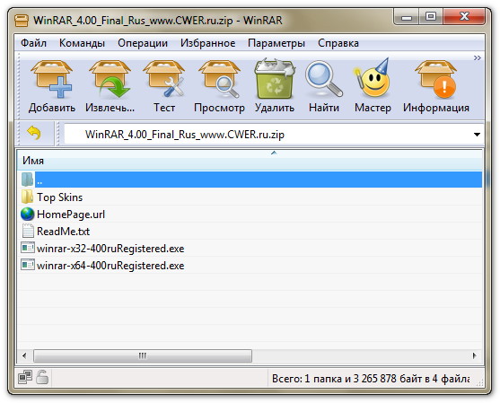 WinRAR - один из самых известных архиваторов. То, что он поддерживает архивацию в формате RAR, это, вероятно, объяснять не надо. Кроме того, программа умеет работать с архивами ZIP, CAB, ARJ, LZH, TAR, GZ, ACE 2.0, BZIP, JAR, UUE, GZIP, BZIP2 и 7-Zip, при этом она обладает многочисленными очень полезными возможностями - шифрование, поддержка непрерывных (solid) архивов, в которых степень сжатия может быть на 10 – 50% больше, чем при обычных методах сжатия, специальный алгоритм для сжатия мультимедийных файлов, поддержка многотомных архивов и многим другим.