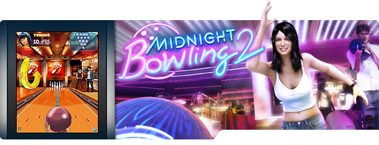 Игра для мобильных телефонов. Станьте звездой боулинга во второй части игры Midnight Bowling, полной новых функций! Размеры экранов: 176х208, 176х220, 208х208, 240х320.