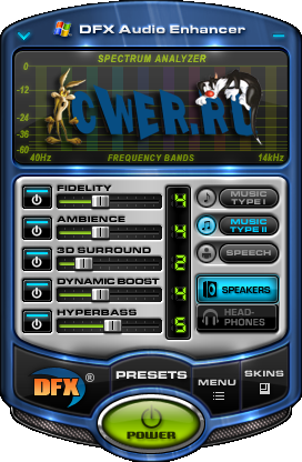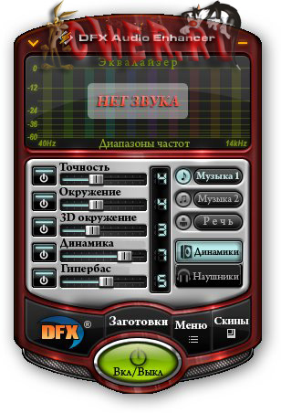 DFX Audio Enhancer - плагин для улучшения качества звучания плееров Winamp, Windows Media Player, MusicMatch JukeBox, Musicmatch, RealPlayer, J. River Media Center, Yahoo! Music Jukebox. C помощью DFX устраняются два главных недостатка - срез высоких частот и недостаточное разделение стереобазы и ее глубины. Есть хорошая подборка заранее заготовленных настроек, то есть пресетов. Проще его можно назвать как модный расширенный эквалайзер, с настройками, которых нет в плеерах.