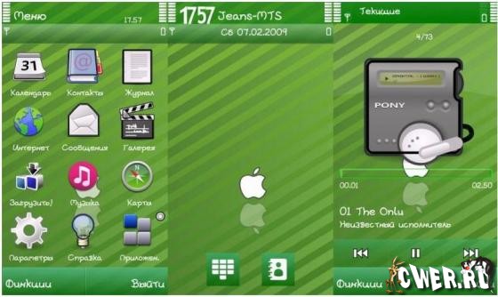 Приятная зелёная тема для Symbian 9.4 (S605th) в стиле Apple