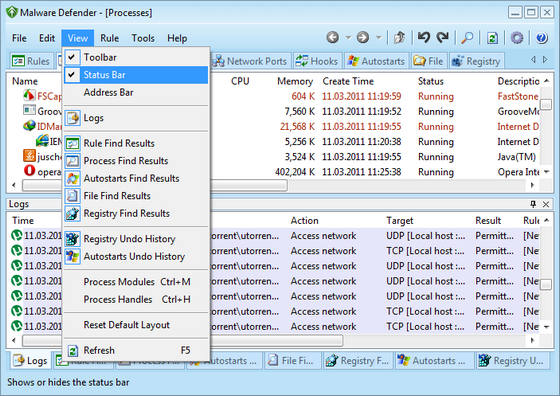 Malware Defender - программа для защиты системы от внешних вторжений, возникающих после установки в систему различного вредоносного программного обеспечения. В программе имеется несколько модулей таких, как менеджер правил приложений, обзор запущенных процессов, редактор реестра, обзор автозапуска программ, файловый обозреватель и т.д. Достоинствами программы являются низкое потребление системных ресурсов и возможность распознавать и пресекать попытки проникновения в систему таких типов вредоносных программ, как трояны, черви, рекламные модули и клавиатурные шпионы. Программа также имеет встроенный детектор руткитов, позволяющий производить их анализ и удаление из системы. Malware Defender отслеживает все скрытые системные процессы и своевременно уничтожает процессы, инициированные вредоносными программами.