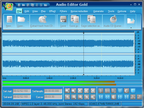 Audio Editor Gold - является передовой и мощной, полнофункциональный цифровой аудио-программным обеспечением для редактирования. Вы можете использовать Audio Editor Gold для записи собственной музыки, голоса или другого звука, редактировать ее, смешать его с другими аудио или музыкальными частями, добавлять эффекты, такие как эхо, хорус и реверберации и мастер его так, что вы можете записать его на компакт-диски , загружать в интернет, или отправлять по электронной. Интуитивный, простой в использовании интерфейс и позволяет выполнять множество операций без каких-либо трудностей! Audio Editor Gold поддерживает все основные форматы аудио-файлов.