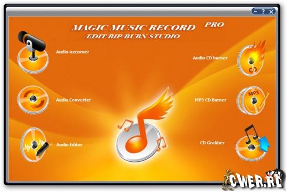 Magic Music Editor Studio Pro является, одним из лучших, усовершенствованных решений, класса всё в одном, для работы с аудио-продукцией. Вы можете не только использовать Magic Music Record/Convert/Edit/Rip/Burn Studio Pro для захвата музыки с компакт-диска, но и записывать звук практически любого формата, не останавливаясь на достигнутом, записать, улучшить и преобразовать звуковые файлы на диск. Также вы можете использовать передовой аудио-редактор для создания собственной музыки и песни, которые можно перенести на компакт-диски, и поделиться им с друзьями на вечеринке.