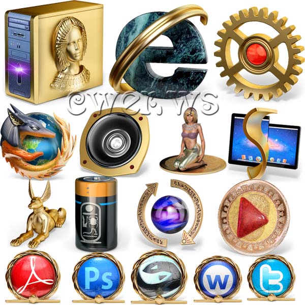 Предлагаю скачать красивые и необычные иконки, которые стилизованы под тематику Древнего Египта. В архиве представлен большой выбор элементов дизайна, оформленных в виде иконок PNG формата. Материал подойдет как профессиональному дизайнеру, так и обычному пользователю, который владеет минимальными навыками работы с графическими редакторами.