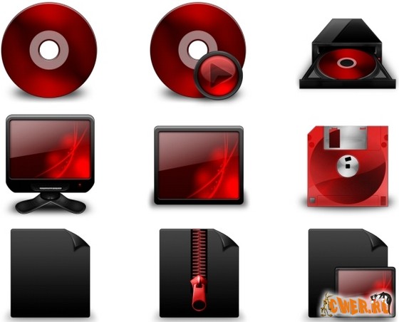 Стильный набор иконок в насыщенных тёмно-красных тонах для украшения интерфейса системы.