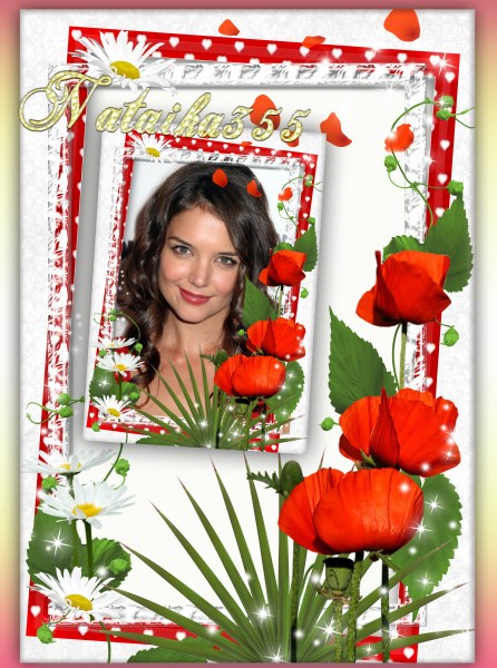 Многослойная фоторамка с маками и ромашками для оформления женского или девичьего фото.