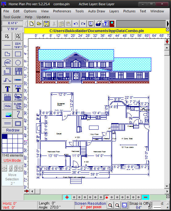 Home Plan Pro - отличная программа для быстрого и легкого черчения плана помещений, мест и архитектурного дизайна. Программа предлагает множество различных инструментов, которые помогут вам начертить план вашего дома, квартиры, жилых помещений и т.д. Пользователю предлагаются такие инструменты, как линии, овалы, прямоугольники, черчение стен, дверей, окон, арок, кирпичных стен, вставка изображений, текста, дублирование предыдущего элемента и многое другое.