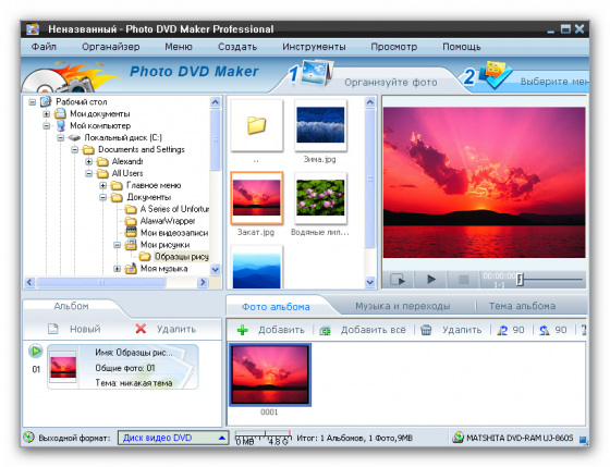 Photo DVD Maker Pro - является мощным и удобным в работе приложением для создания ошеломляющих слайд-шоу. Являетесь ли вы экспертом или новичком, это не имеет значения, программа проста и удобна в обращении. Особенности: создание непрерывного слайдшоу из фотографий или видео роликов неограниченного количества, наложение и соединение со звуковыми файлами (фоновая музыка), текстами, создание титров и субтитров, наложение эффектов перехода с выбором из более 360 эффекта перехода, создание проекта и прожиг в DVD, VCD или SVCD форматах для последующего просмотра на любом домашнем проигрывателе, iPod, Sony PSP, или сотовом телефоне.
