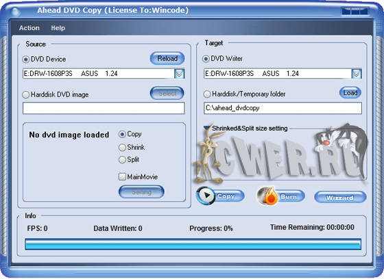 Ahead DVD Copy - программа, позволяющая быстро и качественно скопировать видео с DVD, позволяет создавать точные дубликаты DVD-дисков, разделить DVD9 на два DVD5 или сжать оригинальный DVD до нужных размеров. При использовании Ahead DVD Copy сохраняются все меню, бонусы и другие материалы DVD. Эта программа может скопировать диск на компьютер без потери качества либо переписать напрямую с одного привода на другой.