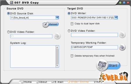 007 DVD Copy - программа для создания копий и backup с Ваших DVD без потери качества. Также копирует DVD CSS-encrypted и region-protected диски. Копирует DVD video (D9 and D5) на DVD диски 4.7GB/Single Layer или 8.5GB/Dual Layer. 007 DVD Copy имеет дружественный простой интерфейс основанный на движке VSO.