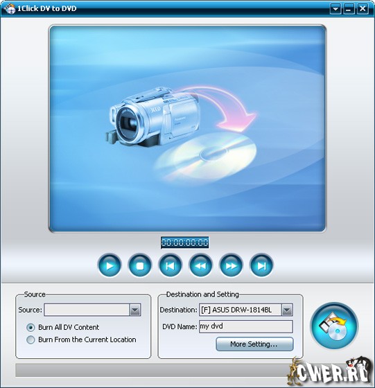 1Click DV to DVD - быстрый и удобный конвертер из DV в DVD. C его помощью Вы можете конвертировать и переносить Mini DV, DV на DVD-Video диск при сохранении качества видео и на высокой скорости. Вы можете конвертировать и переносить все видео или его фрагменты. Есть много других функций, таких как добавление DVD-меню, добавление титров и настройка качества видео при его конвертации. Программа имеет приятный и удобный интерфейс.