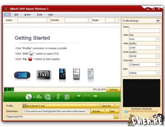 Xilisoft DVD Ripper Platinum - поддерживает риппинг во все самые популярные форматы, среди которых VI, MPEG, WMV, DivX, 3GP, MOV, MP4, MP3, WAV, AAC, M4A. Программа позволяет выбрать язык субтитров, разбить файл на куски указанного размера, задействовать звук Dolby Surround, выбрать битрейт аудио. Кроме этого, программа анализирует тип процессора и в зависимости от этого выбирает наилучшую скорость риппинга.