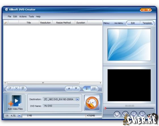 Xilisoft DVD Creator - программа для создания и записи (прожига) DVD с простым и удобным интерфейсом. Основные возможности: создание DVD с полноценными меню и субтитрами из AVI, MPEG, WMV, DV, DivX, Xvid, VOB, 3GP, 3G2, MP4 и других видеофайлов; выбор из имеющихся преднастроек или собственная настройка параметров видео - битрейда, фреймрейда, качества и других параметров DVD, поддержка NTSC и PAL, поддержка соотношений картинки 4:3 и 16:9, предварительный просмотр результата, наконец, прожиг созданного проекта на DVD. Возможно создание и запись на DVD ISО-образа. Поддерживаются DVD-R, DVD+R, DVD-RW, DVD+RW.