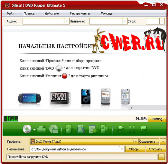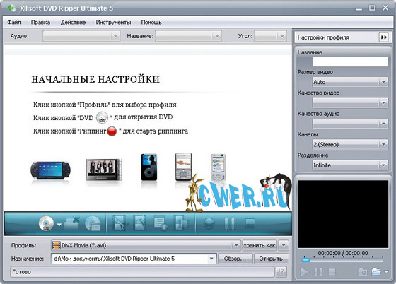 Xilisoft DVD Ripper Ultimate - поможет вам переписывать DVD в любые видео и аудио форматы: AVI, MPEG, WMV, DivX, MP4, H.264, RM, MOV, M4V, XviD, 3GP, MP3, WMA, WAV, RA, M4A, AAC, AC3, OGG и т.д. Xilisoft DVD Ripper Ultimate переписывает DVD, чтобы вы смогли их просматривать на портативных плеерах, например iPod, iPhone, PSP, Apple TV, мобильный телефон и т.д.