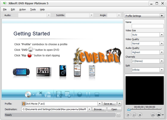 Xilisoft DVD Ripper Ultimate - мощная и удобная в использовании программа для копирования DVD-дисков с возможность конвертирования содержимого в соответствующие аудио и видео файлы типа AVI, MPEG, WMV, DivX, MP4, H.264, RM, MOV, M4V, XviD, 3GP, MP3, WMA, WAV, RA, M4A, AAC, AC3, OGG и т.д. Утилита способна создавать файлы, совместимые с iPod, iPhone, PSP, Apple TV и прочими портативными устройствами. Имеются опции конвертирования сегментов клипа, изменения размеров, наложения эффектов, добавления логотипов, предпросмотра результатов. Присутствует пакетная обработка файлов, получение информации из Интернет-баз и многие другие возможности.
