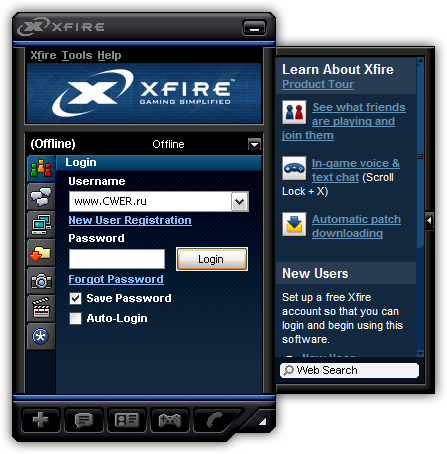 Xfire - интернет-пейджер для обмена сообщениями, разработанный специально для поклонников онлайновых игр. Программа может проверить играют ли в данными момент ваши друзья в игры и на каком сервере, подключиться к ним одним кликом. Кроме того, в отличие от других мессенджеров, Xfire позволяет получать сообщения, не прерывая текущей игры. Xfire имеет голосовой чат, возможность по пересылке файлов, поддерживает более семисот игр.