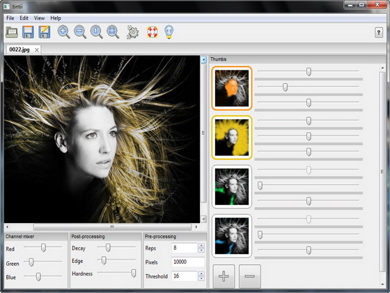 Tintii photo filter — программа и плагин для Adobe Photoshop, Elements и Corel Paint Shop Pro. Tintii это смарт-фильтр, который предназначен для обработки полно цветных фотографий в черно/белые, с возможностью выбора области определенного цвета, методом известным как цвето Popping или селективное окрашивание. Tintii умело группирует цветовой профиль фото в нескольких основных оттенков и в отличие от обычных методов, нет необходимости отслеживать вокруг план объектов, применять маски, или ограничиваться жестким набором цветов и других параметров — все, что вам нужно сделать, это выбрать, какие из этих тонов сохранить, а какие обесцветить.