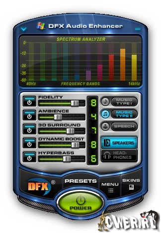 DFX Audio Enhancer - плагин для улучшения качества звучания плееров Winamp, Windows Media Player, Musicmatch, RealPlayer, J. River Media Center. C помощью DFX устраняются два главных недостатка - срез высоких частот и недостаточное разделение стереобазы и ее глубины. Есть хорошая подборка заранее заготовленных настроек, то есть пресетов. Проще его можно назвать как модный расширенный эквалайзер, с настройками, которых нет в плеерах.