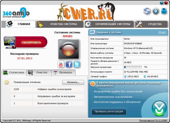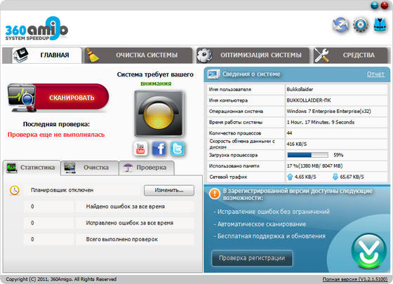 360Amigo System Speedup - инструмент, который поможет вам оптимизировать работу компьютера и исправить ошибки в его работе. В программу 360Amigo System Speedup входят инструменты для очистки системы, оптимизации системы и целый набор инструментов, созданных специально для улучшения работы компьютера.