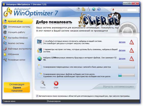 Ashampoo WinOptimizer - новая 7ая линейка пакета программ, позволяющего оптимизировать операционную систему за счет ее настройки и очистки. Включает в себя утилиты для очистки жесткого диска и системного реестра, модуль для обеспечения защиты личной информации путем поиска и удаления файлов и данных, оставшихся после интернет-cepфингa, утилиту для оптимизации интернет-соединения, модуль для настройки программ, автозагружаемых одновременно с запуском системы, а также модули для поиска и удаления ненужных файлов DLL, для безвозвратного удаления данных и для шифрования файлов. Кроме этого, программа позволяет переназначать ассоциации файлов, шифровать и расшифровывать файлы, а также безвозвратно их удалять. Наконец, возможна настройка параметров системы и ее оптимизация за один клик. В шестой версии программы появилось немало новых возможностей, новые модули, включая новый антишпионский модуль и менеджер контекстного меню Windows, а также множество улучшений и исправлений.