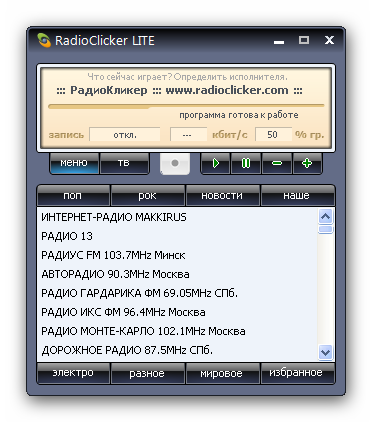 RadioСlicker - это Бесплатное Русское Радио и ТВ на вашем компьютере. Программа предназначена для прослушивания РАДИО на компьютере через Интернет. В дополнении, с помощью RadioClicker можно просматривать русское интернет-телевидение. В программе собранны почти все РАДИО и ТВ каналы вещающие на русском языке.