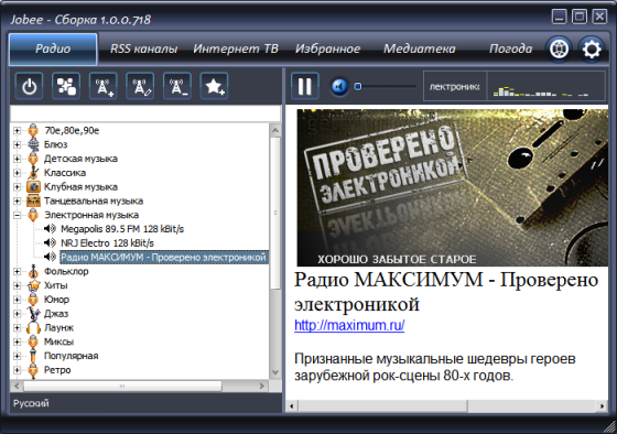 Jobee – это удобный плеер, предназначенный для комфортного прослушивания интернет радиостанций и аудио-подкастов, просмотра интернет-телевидения, чтения RSS-лент. Программа запомнит до какого момента вы прослушали аудио-подкаст или какую последнюю радиостанцию вы слушали. Он сам скачает Вам обновления в RSS-лентах и сообщит об этом нотификатором в правом нижнем углу экрана.