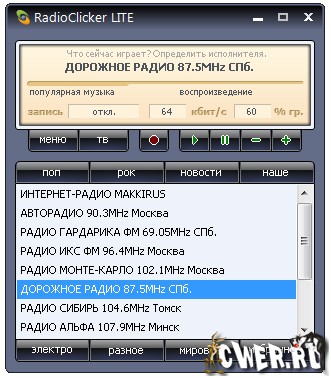 Программа RadioClicker - это ТВ и Радио на вашем компьютере. В программе собраны почти все ТВ и РАДИО станции, вещающие на русском языке. Все радио и телеканалы удобно сгруппированы по стилям и легко доступны для проигрывания. Программа с лёгкостью сохранит выбранную радиотрансляцию или композицию в формат mp3. С РадиоКликер слушать интернет-радио и смотреть телевизор удобно и легко.