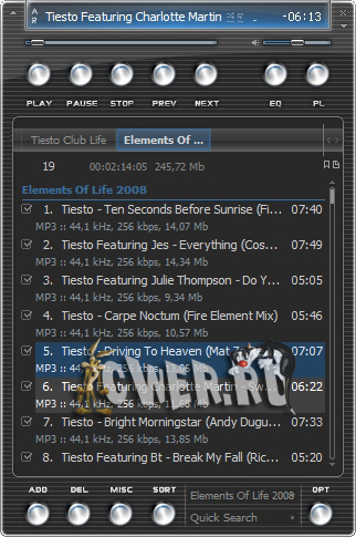 AIMP - это многофункциональный аудио центр. Благодаря встроенным утилитам, вы легко сможете перекодировать музыку из одного формата в другой, записать звук с микрофона или другого звукового устройства, отредактировать тэги музыкальных файлов, а так же группой переименовать или отсортировать их. AIMP базируется на известном аудио движке BASS - вы с легкостью можете подключить плагины от этой библиотеки. AIMP - это отличный аудио плеер с поддержкой: скинов, многих музыкальных форматов и плюс, имеющий встроенные утилиты для работы со звуком. AIMP победил в «Софт года 2007» в номинациях «Интерфейс» и «Функциональность».