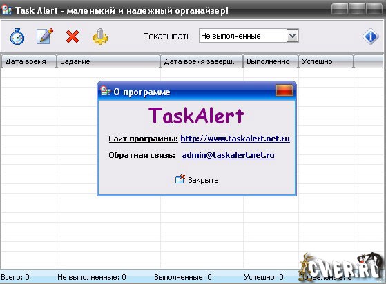 Task Alert - программа электронного органайзера (напоминалка, планировщик заданий) для дома и офиса, позволяющая создавать электронные записки и показывать их в определенное время или через определенный промежуток времени.